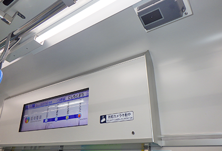 車内のセキュリティを強化するため、車内防犯カメラの設置を進めています。通信機能を有するカメラシステムであり、車内状況の映像を運転指令所などからリアルタイムで確認できるため、事故トラブルが発生した際に状況に応じた迅速な対応が可能となるほか、犯罪や迷惑行為の抑制にもつながります。阪神電気鉄道では2025年4月に保有する全車両(近年中に代替更新する車両を除く。)への車内防犯カメラの設置が完了しました。阪急電鉄は2027年度末までに設置する計画です。